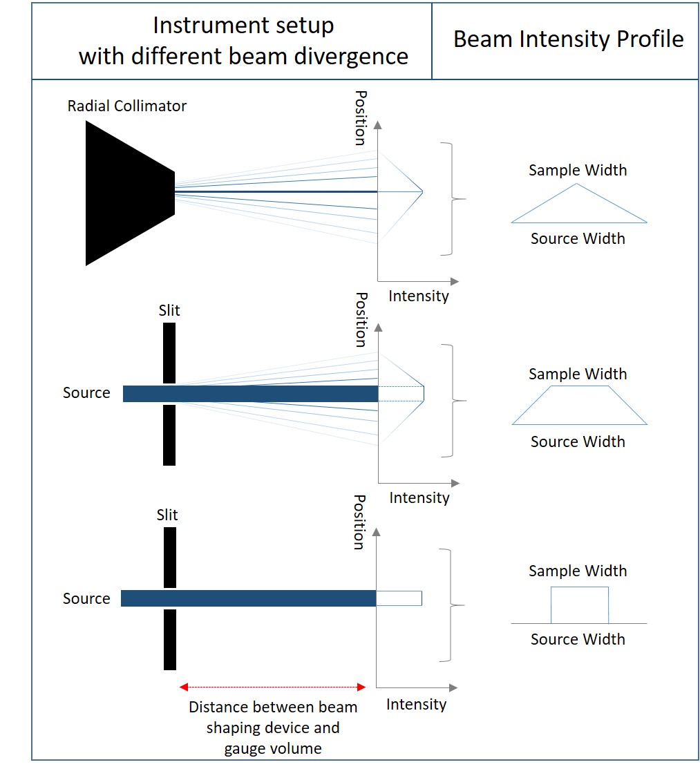 Defines the dimensions of the beam profile used for probing the sample which corresponds to or can be used to determine the instrumental gauge volume.
