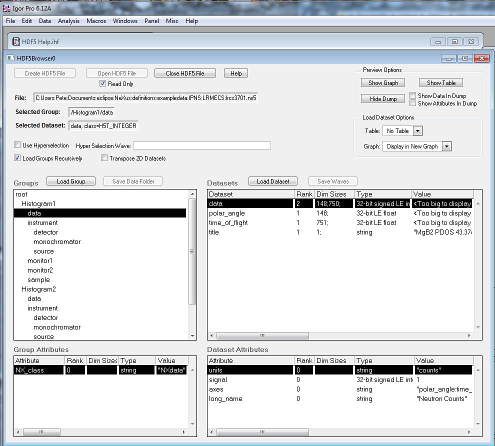 LRMECS lrcs3701 data: IgorPro install HDF5 Browser¶