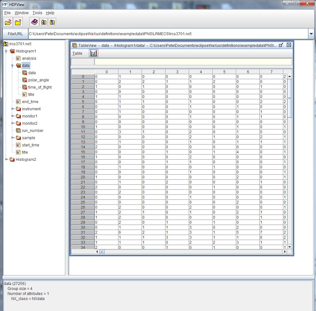 from The HDF Group. After starting HDFview, the data file