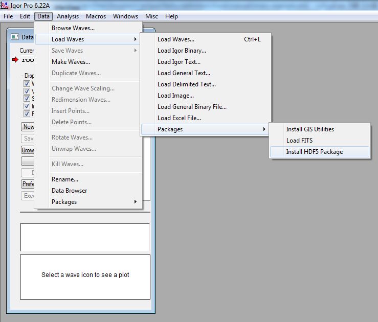 Data; Load Waves; Packages; Install HDF5 Package as shown in the next figure.